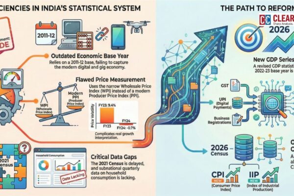 The International Monetary Fund’s (IMF) 2025 Staff Report on India reignited discussion about the nation’s statistical architecture. It rated India’s national accounts data a C-grade. It stated that the evaluation of national accounts has numerous deficiencies. It has drawn attention from around the world. Whereas other macroeconomic datasets obtained a general satisfactory B-grade. The grade…