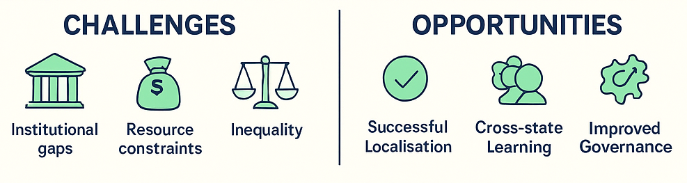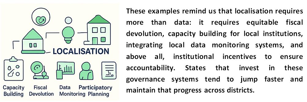The shift in performance clearly signifies that localisation is not about reproducing programme implementation, but is about contending with localised structural constraints: patriarchal social norms, geography, state fiscal space, and institutional readiness; it possible that a state with a solid social infrastructure will progress more rapidly relative to a state with high inequality, low revenue and weak local institutional frameworks.